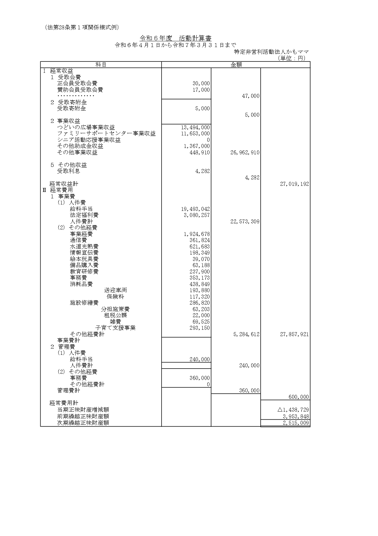 令和6年度活動計算書