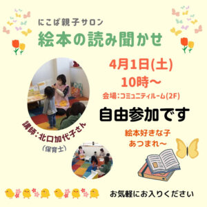 北口加代子氏(保育士)による絵本の読み聞かせと親子ふれあい遊びです。
